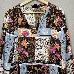 Thalia Sodi Womens Floral Patchwork Blouse XL Long Sleeve V-Neck Polyester Spand