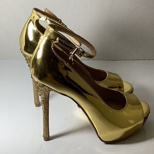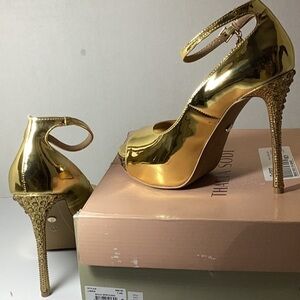Rhinestone sparkle peeks out of peep toes with a gorgeous platform stiletto lift in the Libbie pumps from Thalia Sodi. 5" stiletto heel; 1" platform
