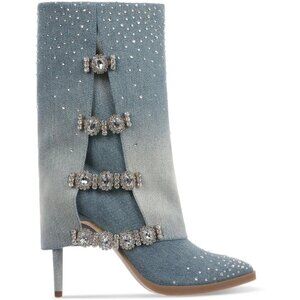 Item description from the seller The Thalia Sodi Nami Embellished Dress Boots in Ombre feature a pointed toe, 4" stiletto heel, and cuffed shaft adorned with chain embellishments. Crafted from fabric upper and lining with a cushioned insole and flexible rubber sole, these boots offer style and comfort. The functional inside zipper closure ensures easy wear, making them ideal for evening events, dressy occasions, or fashionable outings. New with box Long cuffs chained in shimmering accents complete a stiletto lift in the gorgeous profile of Thalia Sodi's Nami boots. 4" stiletto heel Pointed toe Functional inside zipper closure Cushioned insole and flexible sole for added comfort Embellishments at cuffed shaft Note: Shaft height and circumference will vary by size. Fabric upper; fabric lining; rubber sole Imported SKU2: 0925-60-1581 Custom label: VA-1581