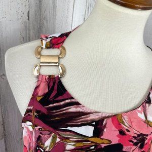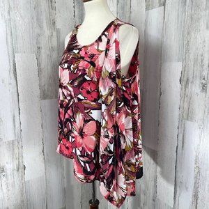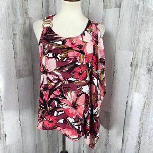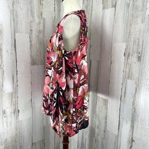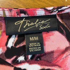Thalia Sodi Women's Pink Floral Semi Sheer Single Side Ruffle Shirt Top Blouse M