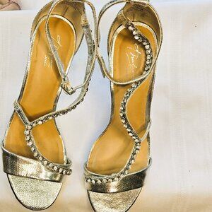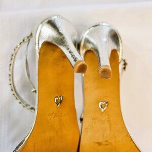 Add a touch of glamor and sophistication to your shoe wardrobe with these Thalia & Sodi Women's Silver Rhinestone Embellished Open Toe Dress Sandal Shoes. Size 8.5 M. These shoes feature an ankle strap for a secure fit, A rhinestone embellished strap, for glamour, that attaches to the open toe bar that helps maintain a secure fit, and High 3.5" heels which makes them perfect for weddings, prom, special ceremonies and other formal occasions. Preowned. No Flaws. Excellent condition.