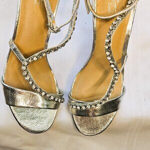 Thalia Sodi Women's Silver Rhinestone Embellished Open Toe Dress Shoes SZ 8.5 M