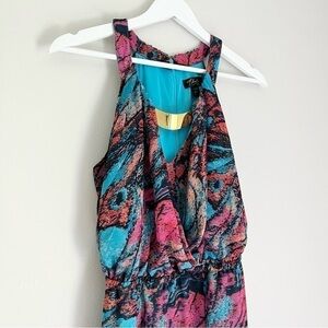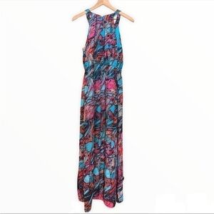 Thalia Sodi "Acapulco" maxi dress in blue, black, and pink colors. Size small.