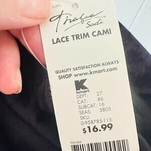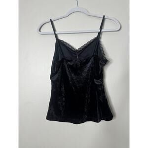 Thalia Sodi Y2K Black Velvet Lace Trim Cami Tank Top Small Whimsigoth Witchy