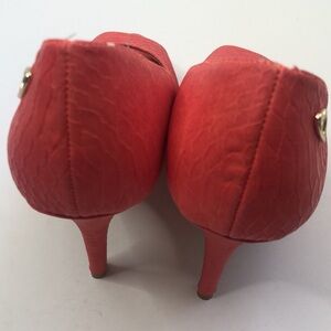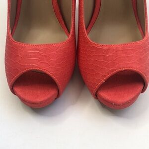 Pretty coral leather-look snakeskin print heels. 4” heel. Excellent condition, barely worn.