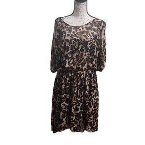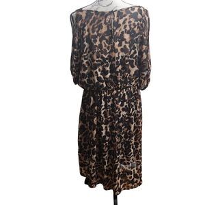 Thalia Sodi Ladies Size Large Brown Tan Split-Sleeve Sheer Leopard Print Dress