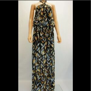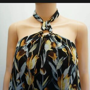 TYPE: Womens Sleeveless Illusion Halter (tie at the back of the neck) Maxi Long Dress with attached black lining