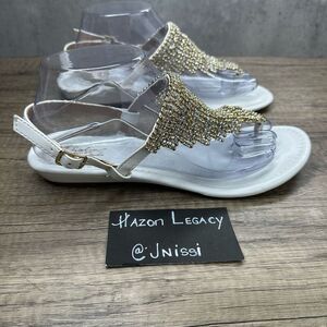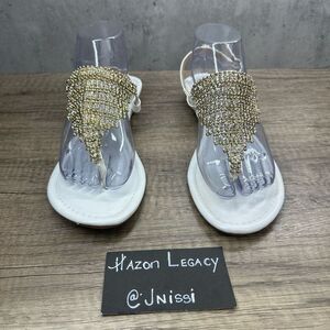 Thalia Sodi~Women's~White Embellished Open Toe Wedge Sandals~Size 9M
