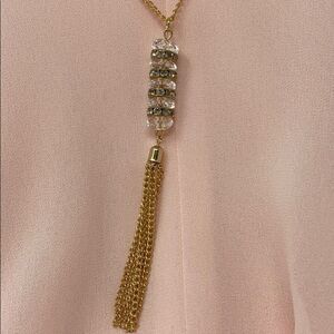 EUC, gorgeous formal embellished tank. Flawless, feminine, flowy, pink, with jeweled necklace built in. Sexy V back with horizontal straps.