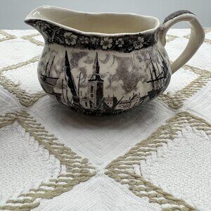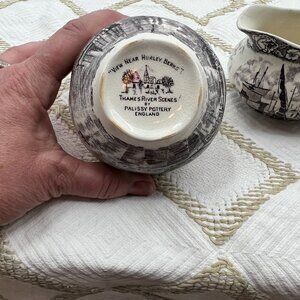 Thames River Scenes by Palissy Pottery Sugar bowl and creamer. Made in England