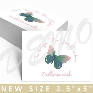 Price includes your closet/business name listed on the thank you cards. Cards will be personalized with your closet name in all LOWERCASE lettering and an @ sign. Looking to place a personal message instead of your business name or to purchase a bulk order? Just let us know!