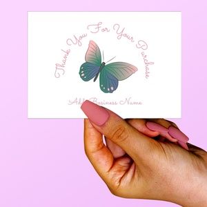 Custom thank you note cards are an affordable finishing touch to your tissue paper or packaging box. Custom cards are also the perfect way to take your branding to the next level by showing your client that their order was packaged with love and care. The card back is blank with plenty of room to write a personal note to your customer.