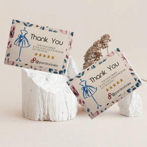 Elevate your customer’s experience with these Flowered “thank you for purchase business cards. Blank on the back-side so seller can add a personal note.
