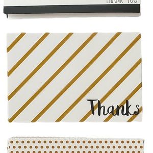 Set of 15 blank thank you cards with 15 matching white envelopes. Includes 5 different card designs with 3 cards in each style.