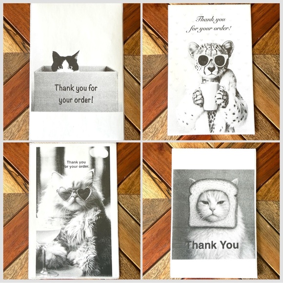 You get a mixture of each design pictured for a total of 100 stickers. These are 4x6 perfect for inside order or outside on the box or to cover up box imperfections. Lots of other designs and I can create customs too. Also available in color and different sizes depending on what you would like(prices vary). Message me for additional information if interested.