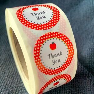 Thank You Sticker Labels 500 labels on roll. 1” Round NWT Apple Dots