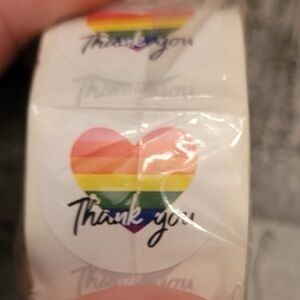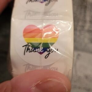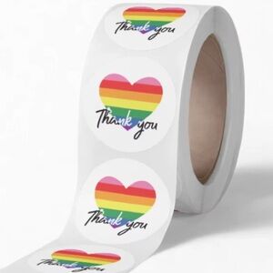 Thank You Sticker Labels 500 labels on roll 1 inch round, NWT colorful heart