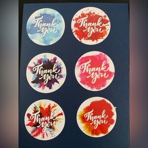 Thank You Sticker Labels 500 labels on roll. 2” Round NWT 6 Colorful Designs