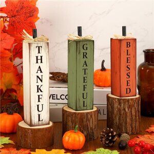 Thankful Blessed Grateful Tabletop Signs Thanksgiving Wooden Block Signs