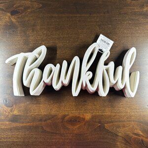 "Thankful" Cream Resin Decor in Elegant Cursive