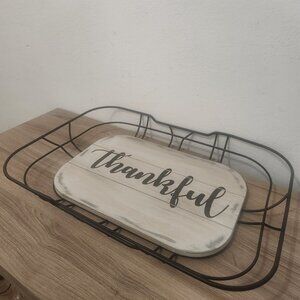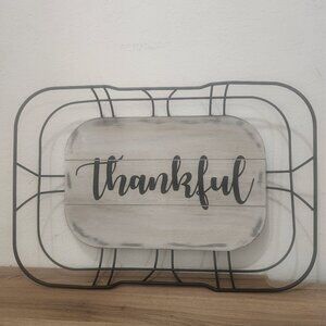 Thankful Farmhouse Decor Metal and Wood Tray 18.75 Inches