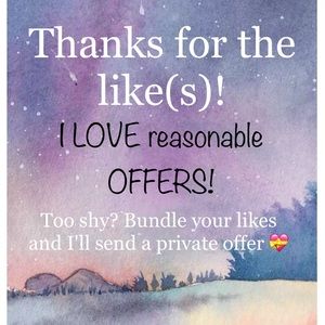 Thanks for the like(s)! I love making deals- especially on bundles. Create a bundle and make an offer- or if you would prefer add items to the bundle and I'll send an offer. Just interested in one? Make an offer! Either way -Happy Poshing!