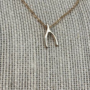 New on card, only removed to photograph, goldtone wishbone pendant necklace with delicate chain! Express your gratitude and appreciation for somebody with this beautiful gift.