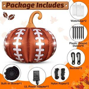 🆕Thanksgiving 5 FEET Inflatable Pumpkin Football Outdoor Decoration LED Lights
