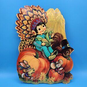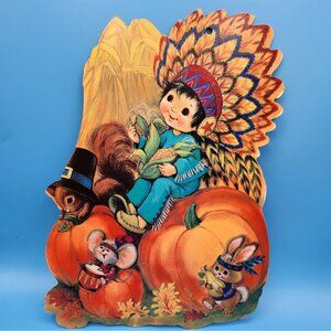 Thanksgiving Eureka Diecut Pilgrim Children Harvest Fall Harvest Double Sided Wa