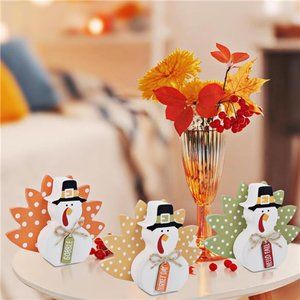 Thanksgiving Fall Decorations, Set of 3 Tabletop Turkey Decor Wood Table Sign