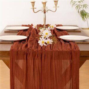 Thanksgiving Fall Table Runner Terracotta Cheesecloth Gauze Burnt Orange Boho