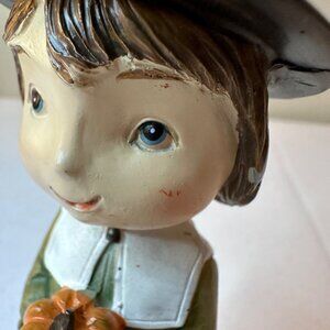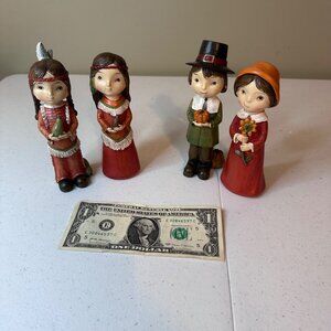 Charming set of Thanksgiving-themed figurines featuring two Pilgrims and two Native American figures.