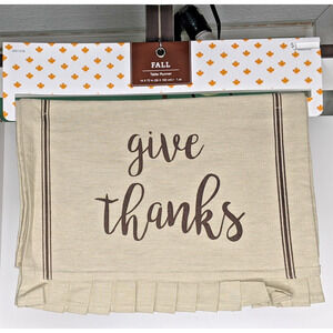 Thanksgiving GIVE THANKS Table Runner Natural Cotton 72" x 14" Ruffle Ends NWT