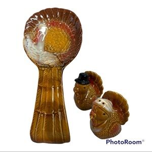 Thanksgiving Kitchen Ceramic Set Spoon Rest Salt Pepper Shaker Set 3 PC