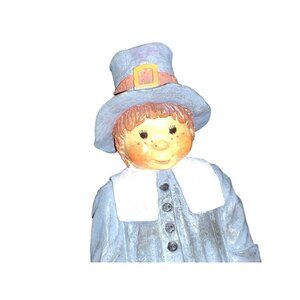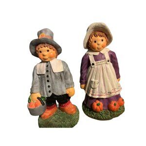Thanksgiving Pilgrim Boy & Girl Figurine Set - Hand-Painted Resin Decor