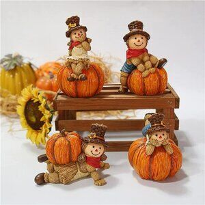 Thanksgiving Scarecrow Pumpkin Harvest Figurines Tiered Tray Decor, (SP-4set)