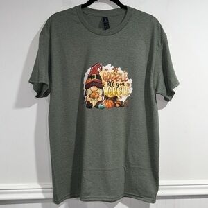Thanksgiving tee shirt gobble till you wobble large unisex gnome olive green