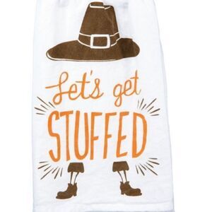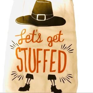 Writing says “Let’s Get Stuffed” with Pilgrim hat & legs.