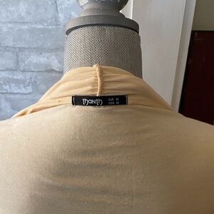 Wear this pretty creamy peach sweater as a light cover up