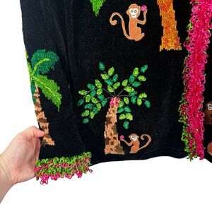 That Sweater Monkey Cardigan Sweater Wearable Art Neon Retro Womens Size XL
