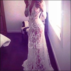 sexy soft plunge v neck mesh sheer lace love gown // size : xs // ETHEREAL WHITE