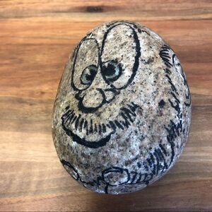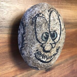 This rock was illustrated by an old friend of the family who also happened to be a darn talented artist. He drew on it to lift the sulky mood of my 6-year-old self, and boy, did it work! That little rockman butt kept me giggling for years!