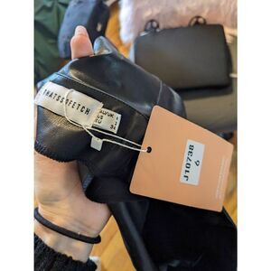 Thatssofetch Murk Skirt. Black PU faux leather mini skirt with asymmetrical hem. Back zipper closure. Minor flaw in the stitching at the base of the zipper but not noticable. New with tags.