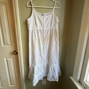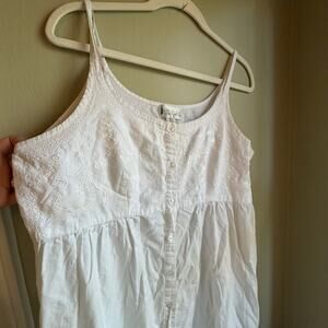 The Ruby nightgown made of 100% cotton, is ideal for embracing steamy, warm nights with comfort. Breathable and airy, this full front buttoned placket, scoop neck, sleeveless, mid-calf length garment gently cloaks the skin in a light layer that is easy to slip on and off. Ruby, with elegant embroidery and subtle ruffles, inspires passion-filled evenings and blissful mornings.