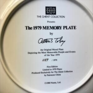 12". Comes in original box and packaging with Certificate of Authenticity. An original mural plate depicting the most memorable people and events of the year 1979.