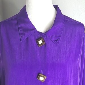 The 1 East Custom Collection Purple ButtondownBlouse, Big White Buttons, Size 14
