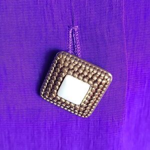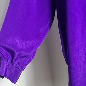 * Deep purple blouse with large square gold buttons with white in the center