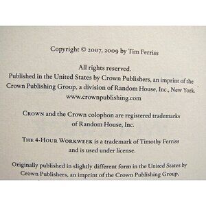 The 4-Hour Workweek Book Expanded Updated Timothy Ferriss Economic Self-Help Hardcover2007/2009Very Good Condition - pages show dog-ear, some writing or highlighting may exist - no rips or tears - cover in great shape and spine is in perfect condition