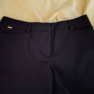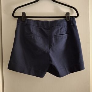 These navy blue Bermuda shorts are crafted from a comfortable cotton blend, offering a relaxed fit perfect for everyday wear. With a classic look, they provide a timeless style suitable for any casual occasion. Size 4. waist side to side measures 15 inches. Length 14 inches.
