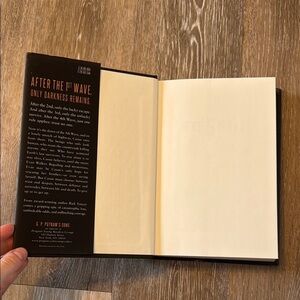 Like new! The 5th Wave hardcover book with a striking cover design. Features a silhouette in a forest with golden hues.